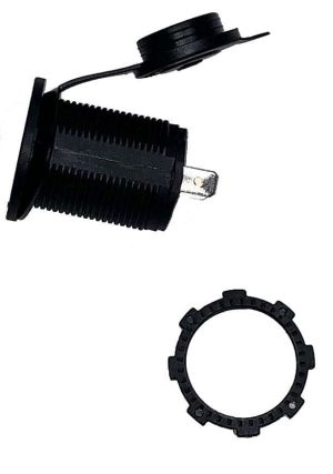 - Charge a cell phone, GPS, or other device while on the go. This 12 volt receptacle mounted below the fuel tank is manufactured from corrosion resistant marine grade materials. It features an interconnecting system that securely locks the plugs into the locking receptacle resulting in a positive and moisture proof connection.
